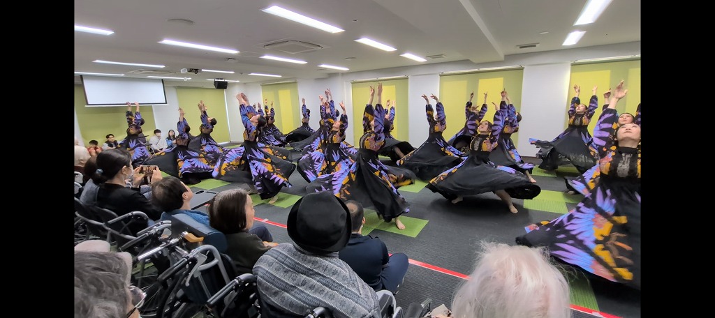 11月22日(土)此花区にある特別養護老人ホームクローバーの秋祭りに招待していただき、1年生・2年生の各学年作品、今年度の大会作品「部屋と幻(幻現)」を踊らせていただきました。