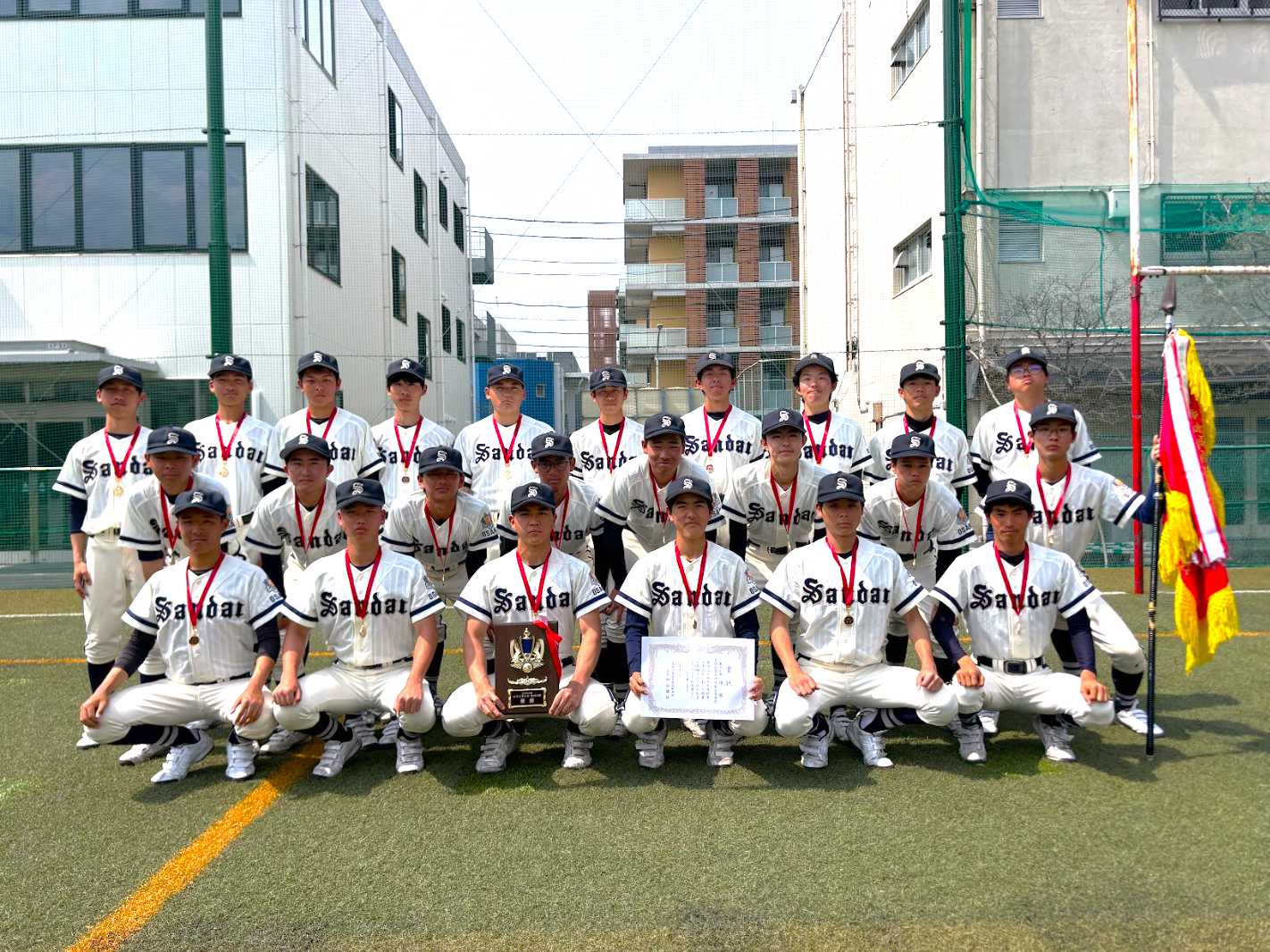 祝・優勝!軟式野球部が工業大会を制覇。新体制で最高のスタート! 軟式野球部が、工業大会で見事「優勝」の栄冠に輝きました! 代替わりを経て新チームとなってから、目標に掲げていた「初のタイトル」を手にすることができました。接戦を制し、最後まで粘り強く戦い抜いた選手たちの姿は、新チームの大きな自信へとつながったはずです。 この結果に満足することなく、次なる大会に向けてさらに精進してまいります。今後とも温かいご声援をよろしくお願いいたします。