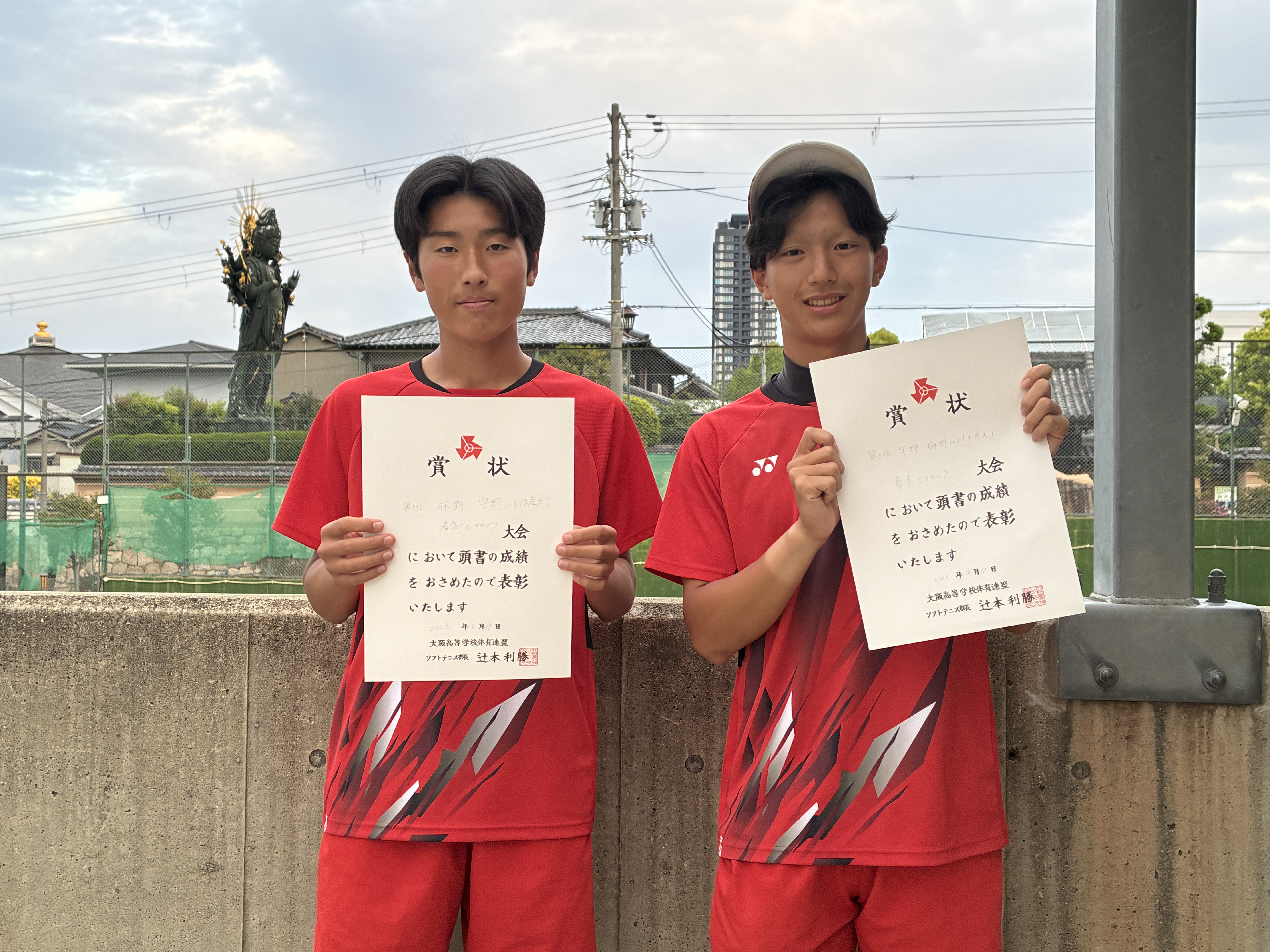 ソフトテニス部 春季大会 (男子個人戦) 先日、大阪高等学校ソフトテニス春季大会にて男子の個人戦がおこなわれました。 結果、宇野・麻野ペア、村下・宮崎ペア、中野・鍛治ペアの計3ペアが中央大会の進出を決めました。 特に宇野・麻野ペアは順当に勝ち上がり、第5位に入賞しました。 今後とも応援よろしくお願いいたします。