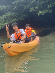 宮良川カヌーでは、カヌーに乗って、国の天然記念物に指定されている宮良川のマングローブを探索し冒険気分を楽しみました。マングローブやガジュマルの木が茂るトンネルをくぐりながら、サンゴ礁でできた洞窟を目指しました。自然を感じながら漕ぐカヌーは気持ちよく、冒険心もくすぐられました!