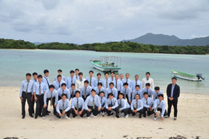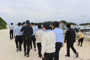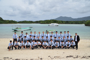 その後、バスにて移動しガイドさんの案内のもと川平湾へと向かいました。川平湾ではウミガメや珊瑚などを見学。これぞ石垣島という綺麗な海を堪能し、海辺で集合写真を撮ったのちに自由散策を満喫しました。