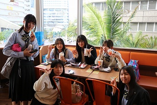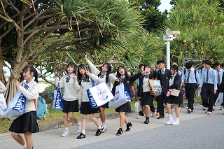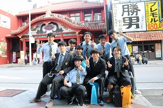 ホテルに戻ってバスに乗車してから約2時間ほどで国際通りに到着しました。生徒たちは自由に散策しましたが、みな生き生きした表情で食事をしたり、ショッピングをしていました。家族や友人、先輩、後輩へのお土産を大量にバッグに入れて那覇県庁前に集合、バスで那覇空港へと向かいました。