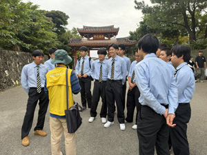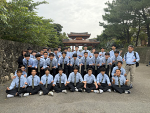修学旅行 3団 4日目 修学旅行4日目 いよいよ最終日。 各クラス、美ら海水族館と首里城に分かれて見学を行いました。 美ら海水族館では大きな水槽に感動し、色とりどりの魚やジンベイザメを鑑賞しました。また、お土産を買ったりと満喫しました。 首里城では、沖縄の歴史・文化や琉球王国の歴史を肌で感じることができました。 最後に国際通りで、ランチとショッピングを楽しみました。 いつもお世話になっている人たちのことを考えてお土産を選んでいる姿が見受けられました。