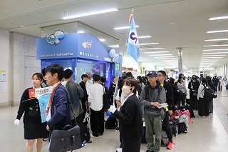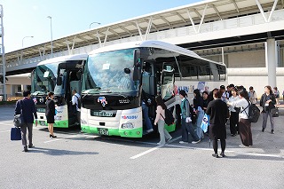本日は次の目的地である沖縄本島に向かいます。「みぃふぁいゆー(ありがとう)」2泊お世話になったグランヴィリオリゾート石垣島の方々に感謝の念を抱き出発しました。石垣空港から約1時間で那覇空港に到着、晴天にも恵まれました。