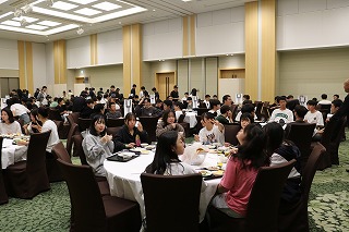 その後、本日宿泊するオリオンモトブリゾートへ移動し、ビュッフェ形式での夕食をとりました。修学旅行中に誕生日を迎えた生徒が2名いましたが、その生徒たちを皆でお祝いするというサプライズが生徒主導で行われました。その際、沖縄民謡の「ユイユイ」を合唱しました。「ユイ」は人と人の結びつきを意味する言葉で、クラスメートまたは進学コースの生徒たちが、この歌の歌詞にあるように今まで以上に協力し、助け合っていけるようになってほしいと思います。明日はいよいよ最終日。美ら海水族館と国際通りを訪れた後、帰阪します。