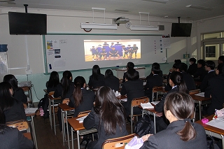 対面式の後、新入生は各教室でクラブ紹介の動画を視聴しました。各クラブとも熱意の伝わる動画を作成し、新入生たちは真剣な表情でクラブ紹介動画を見ていました。