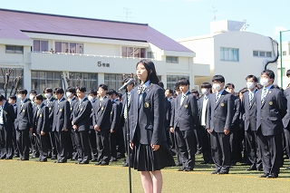 それから、対面式が行われました。新入生はこれからスタートする高校生活への意気込みを抱きながら上級生に一礼をし、在校生代表は温かい言葉を新入生に送っていました。