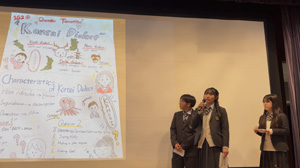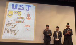 各班のプレゼンテーションでは、英語での掛け合いやクイズ、芝居など様々な趣向をこらした発表が行われました。