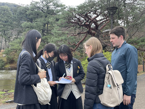 前日の練習の成果もあり、どのグループも積極的に外国人観光客に声を掛けに行っている様子が見られました。