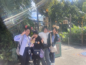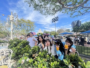 どこまでも広がるカリフォルニアの青空のもと、アメリカならではの開放的な雰囲気を満喫しました。仲間と公式アプリやマップを駆使し、英語でスタッフの方に尋ねながらパーク内を散策。お揃いのグッズを身に付け、思い出深い写真をたくさん撮影することができました。